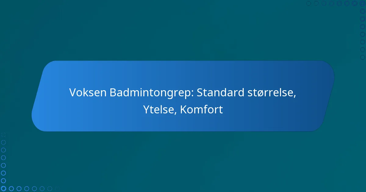 Standardstørrelser for voksen badmintongrep varierer vanligvis fra G1 til G5, med G4 som den vanligste. Å velge riktig grepstørrelse er avgjørende for komfort og ytelse, da det kan påvirke spillestilen din betydelig.