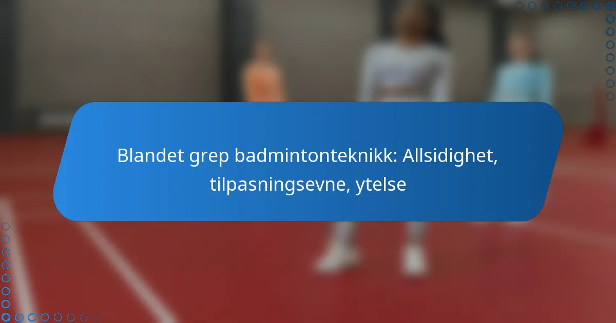 Den blandede grepet badminton-teknikken er en dynamisk tilnærming som kombinerer forehand- og backhand-grepene, og gir spillerne økt allsidighet og tilpasningsevne på banen. Ved å mestre dette grepet kan utøvere forbedre variasjonen i slagene sine og defensive evner, noe som fører til bedre totalprestasjon under kampene. Denne teknikken er avgjørende for raske justeringer og effektiv dekning av banen, noe som gjør den til en verdifull ressurs for konkurransespillere.