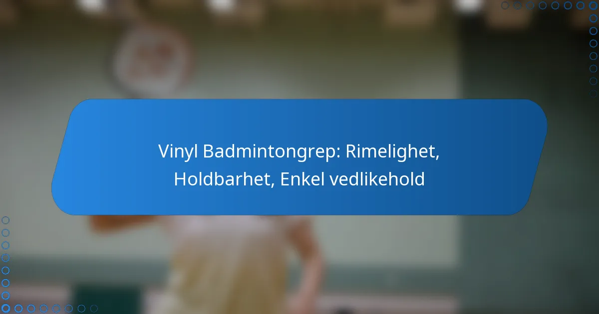 Gummibadmintongrep er essensielle for å forbedre spillerens ytelse gjennom sine sjokkabsorberende egenskaper, som reduserer vibrasjoner og minimerer risikoen for skader. Teksturen på disse grepene spiller en viktig rolle i grepstyrke og kontroll, noe som gjør at spillerne kan håndtere racketene sine effektivt. Ved å velge riktig grep kan spillerne forbedre komfort og nøyaktighet under spillet.